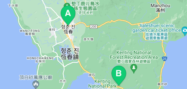교통: 컨딩과 헝춘은 대중교통이 잘 발달되어 있지 않아 대부분의 여행객들은 스쿠터를 대여합니다. 스쿠터 대여료는 1일 기준 5천원부터 시작합니다.