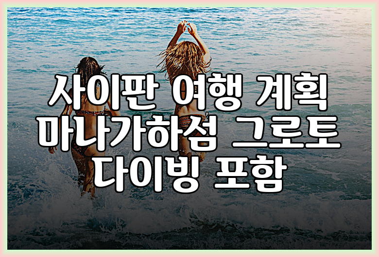 사이판 여행을 계획 중이시라면, 마나가하섬과 그로토 다이빙을 꼭 포함시키는 것을 추천해요. 단순한 휴식을 넘어, 잊지 못할 추억을 만들 수 있는 최고의 선택이 될 거예요.