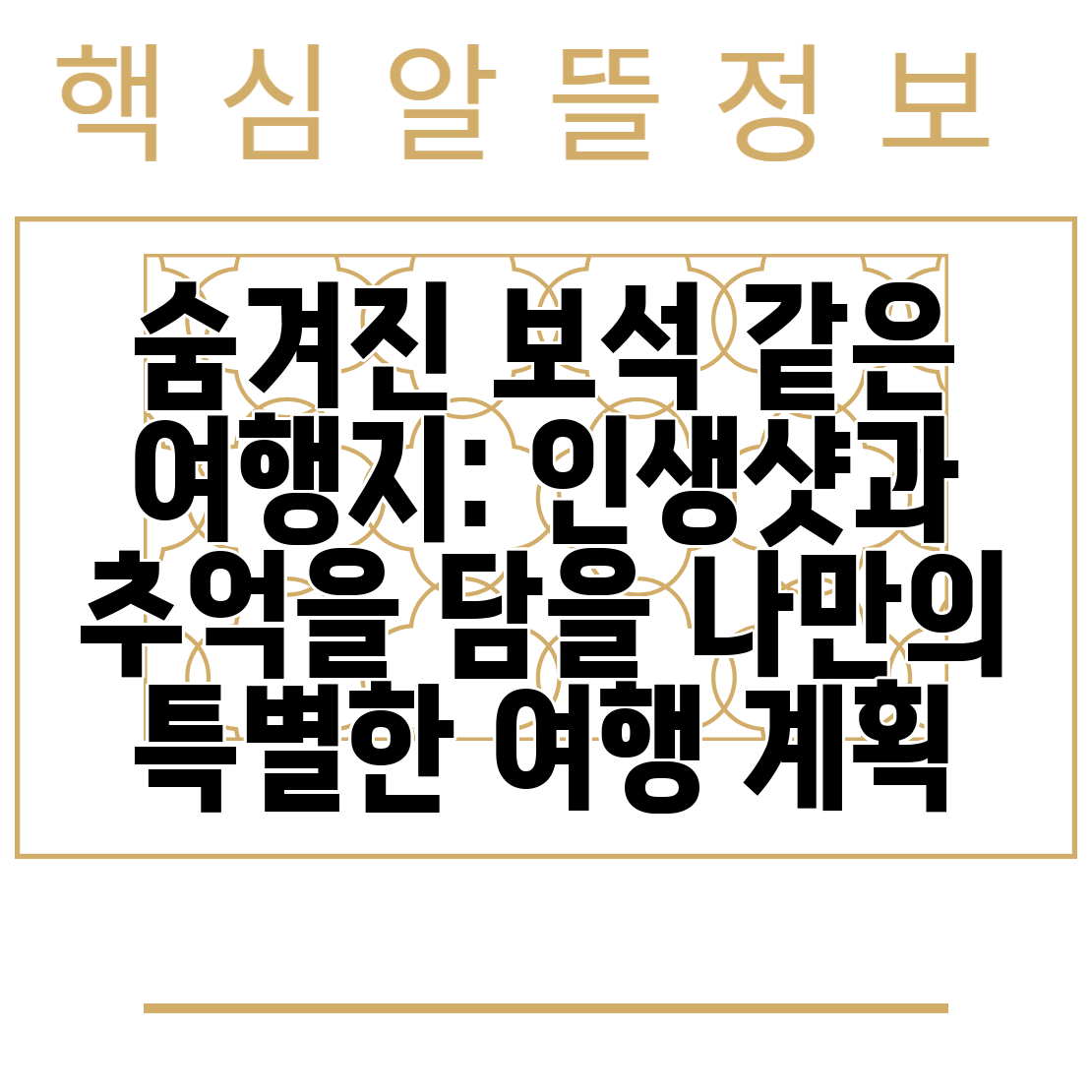 숨겨진 보석 같은 여행지: 인생샷과 추억을 담을 나만의 특별한 여행 계획