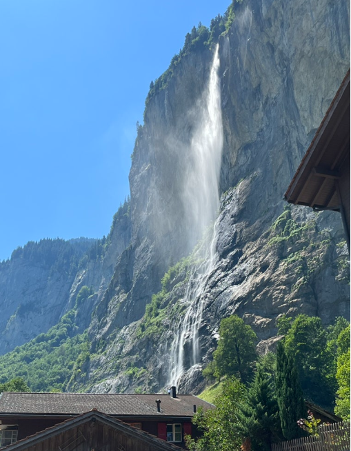 슈타우바흐 폭포: 라우터브루넨 마을 중심부에 위치한 폭포로, 웅장한 광경을 감상하며 산책을 즐길 수 있습니다.
