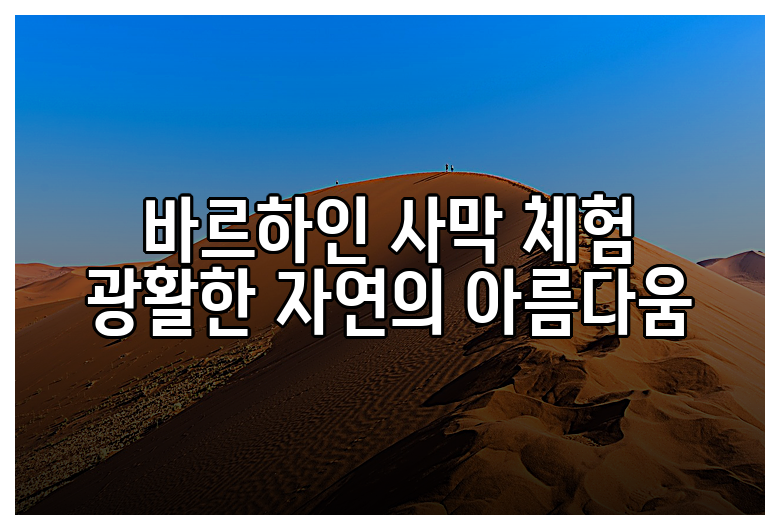 바르하인 여행은 단순한 관광을 넘어, 잊지 못할 추억을 만들 수 있는 특별한 경험이 될 것입니다. 아름다운 전통시장과 광활한 사막의 매력을 동시에 경험하는 것만큼 매력적인 여행은 없을 거예요. 지금 바로 바르하인으로 떠나, 시간을 초월한 문화와 자연의 아름다움에 흠뻑 빠져보시는 건 어떨까요? 여러분의 바르하인 여행이 즐겁고 행복으로 가득하길 바랍니다! 지금 바로 여행 계획을 세워보세요!