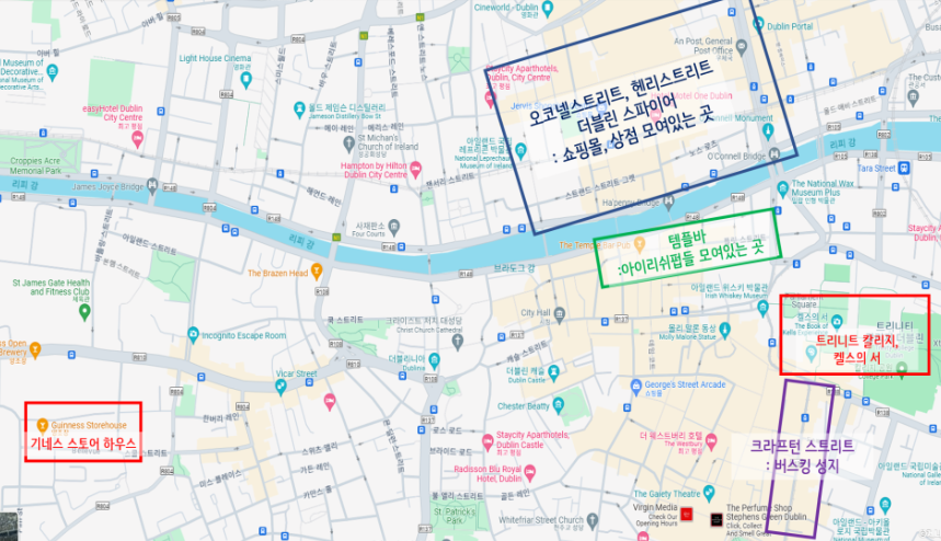시티 센터: 주요 관광 명소와 가까운 편리한 위치 템플바: 활기 넘치는 분위기를 원하는 여행객에게 적합 도클런즈: 트렌디하고 현대적인 분위기를 원하는 여행객에게 적합