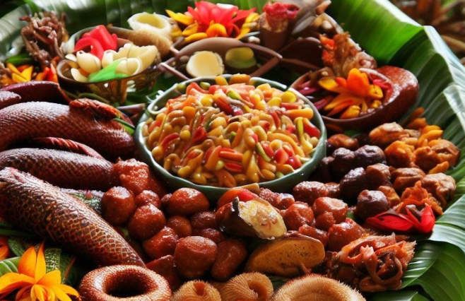 파푸아뉴기니의 대표적인 음식은 다음과 같습니다. 카올리아 (Kaolia): 파푸아뉴기니의 전통 음식으로, 돼지고기, 닭고기, 생선 등을 잎으로 싸서 구운 음식입니다. 카카루 (Kakaru): 파푸아뉴기니의 전통 음식으로, 과일, 야채, 견과류 등을 섞어 만든 음식입니다. 사모사 (Samosa): 인도 음식으로, 파파야, 고구마, 콩 등을 넣고 만든 음식입니다.