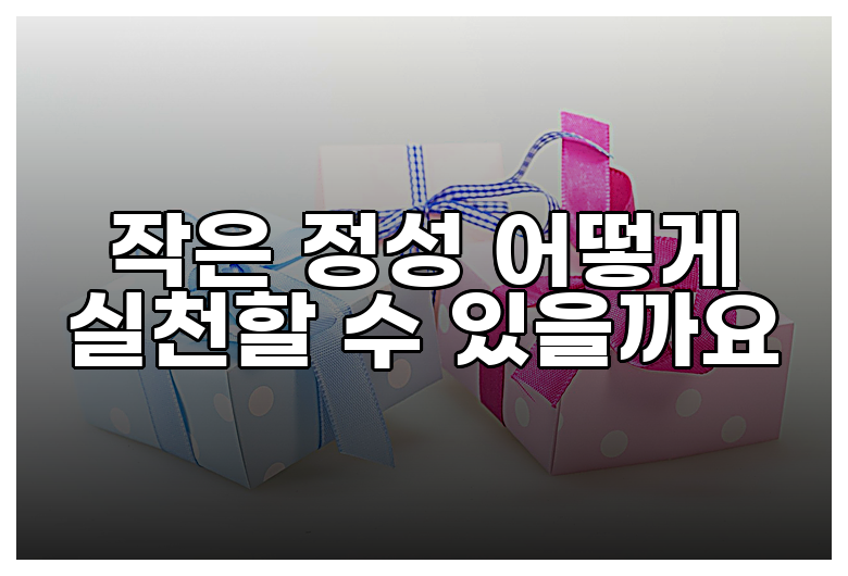 작은 정성을 실천하는 방법은 생각보다 다양하고 쉽답니다. 꼭 거창한 일이 아니더라도, 일상 생활 속에서 작은 변화를 통해 실천할 수 있어요.