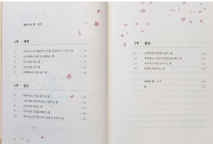 주인공은 기차에서 소크라테스를 만나 그의 유명한 문답법을 직접 경험하게 됩니다. 그는 또한 플라톤과 이상 세계에 대한 이야기를 나누고, 아리스토텔레스와 논리학과 윤리학에 대해 토론합니다. 이 외에도 데카르트, 칸트, 니체 등 다양한 철학자들을 만나 그들의 사상을 배우게 됩니다. 철학자들과의 대화를 통해 주인공은 자신의 삶에 대해 새로운 방식으로 생각하게 됩니다. 그는 과거를 돌아보고 현재를 성찰하며 미래를 계획합니다. 또한 인간의 본질, 행복의 의미, 삶의 목적 등에 대해 깊이 생각하게 됩니다.