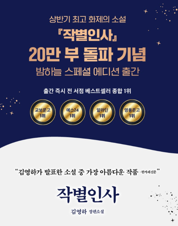 김영하 작가의 '작별인사'는 삶과 죽음, 그리고 그 사이의 모든 것을 다룬 소설입니다. 주인공 '나'는 호스피스에서 환자들의 마지막 순간을 함께하며 삶의 의미에 대해 고민하게 됩니다.