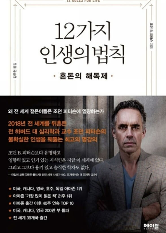 12가지 인생의 법칙은 2018년에 출간된 조던 피터슨의 책입니다. 조던 피터슨은 캐나다의 임상 심리학자이자 토론토 대학교 교수로, 그의 강의와 저서는 전 세계적으로 큰 인기를 얻고 있습니다. 12가지 인생의 법칙은 인생에서 성공하고 행복하기 위한 12가지 법칙을 담고 있습니다. 이 책은 혼돈과 어려움으로 가득한 세상에서 삶의 의미와 방향을 찾고자 하는 사람들에게 큰 도움이 될 수 있습니다.